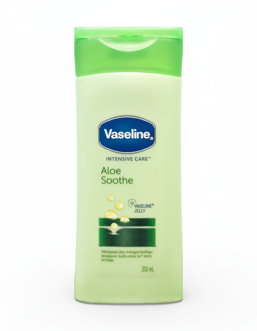 A refreshing body lotion enriched with aloe vera and Vaseline Jelly. It is formulated to soothe and deeply moisturize dry skin, leaving it feeling hydrated and healthy without a greasy residue.