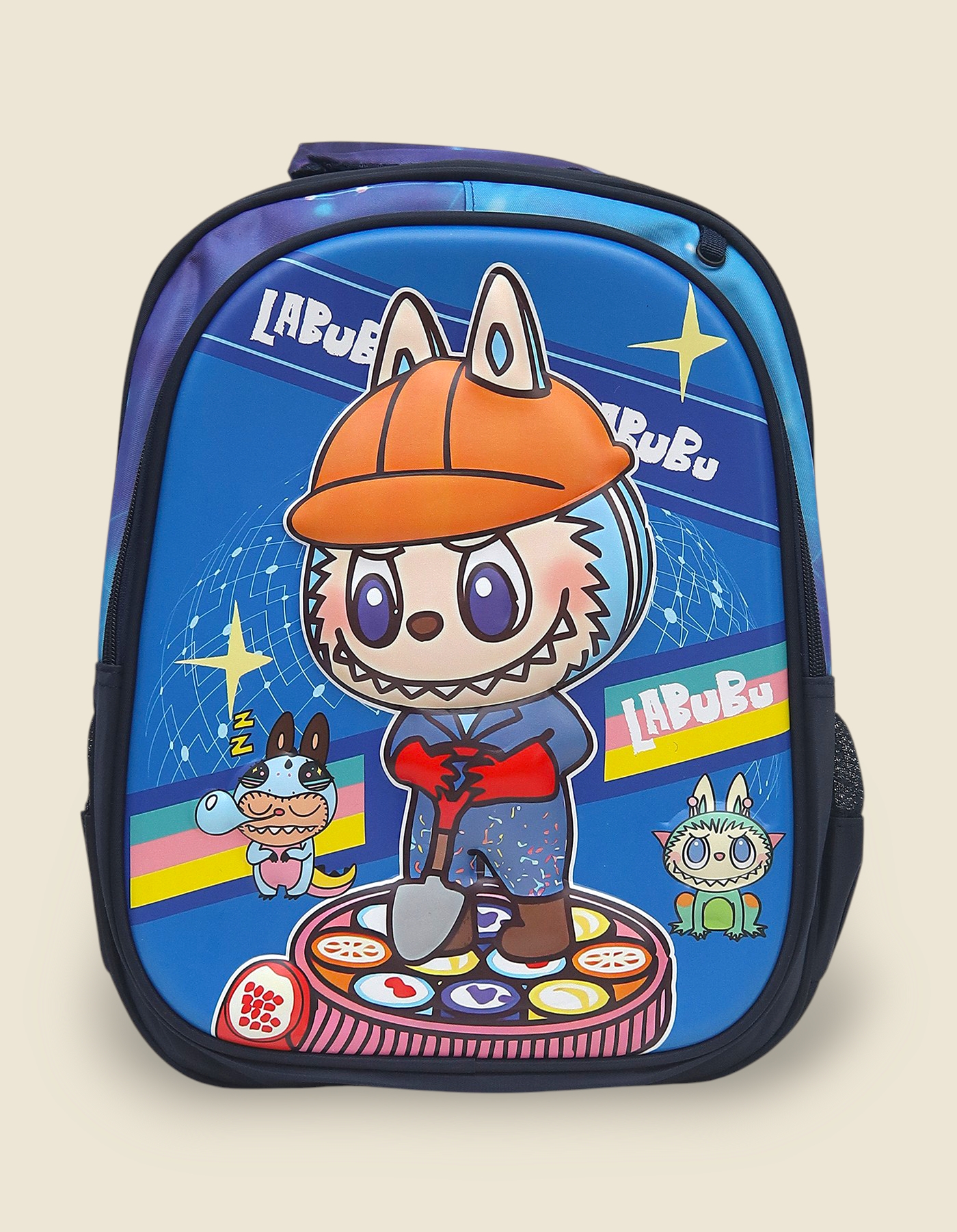 This is a cool and colorful school bag for kids who love fun characters. It is available in two different Blue styles: Skater Labubu and Builder Labubu.